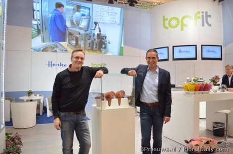 Björn Stiening and Ronald van Dijk at the IPM Essen 2018, where they showcased the prototypes of their new hydrangea container.