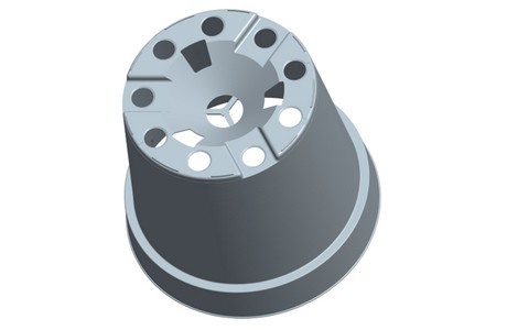 Together with a Dutch hydrangea grower, Henke Kunststoffe designed this new pot. "This grower was looking for a solution to increase the drainage of the pot and therefore contacted us." Together with the grower, Henke started to search for a possible solution. "We found the bottleneck, which was the center of the bottom in this container. It was not draining well; the center was often too wet which resulted in no or limited root development of the plant in that area." The next step was finding a solution. "After doing research, we decided to create a sloping elevation with a center hole and 3 drainage holes in the center of the bottom of the pot. It absorbs and drains the water better. Besides, the substrate volume in the center of the pot is better used by the plant because now the roots are developed in that area as well." This means that you can use a smaller pot instead a 1.4 or 1.5 liters.
