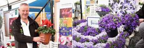 The cyclamen is the largest cyclamen in the cyclamen line of Schoneveld. This Mammoth red is an approved variety and has been tested in several hot climates. According to Koers, the reactions in Italy were very positive; the color does not fade. Campanula Florentes Avida is a series that consists of two varieties, white and blue. It was introduced in Europe last year and currently, programs are running in the US. Click here for the enlarged picture.