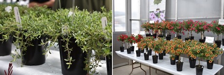 On the left: New line of Argyranthemum Daisini. The new line comes from Plantinova and consists of five varieties of which three (Coral, Yellow, White) were presented at the CAST. The Argyranthemum in the line have more small and many flowers, are more compact and uniform. On the right: