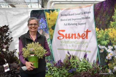 Janet Sluis of Plant Development Services, presenting Meerlo lavender at Sunset WesternGarden Collection. A variety that was introduced last year and from this year onward, it will be available to every grower.