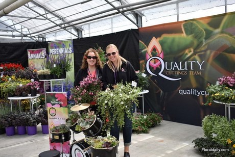 Jacqueline Azbill and Carolyn Forro of Quality Cuttings Team, a new company (employee owned) out of HMA Plants. Azbill is holding Gaura Lillipop Supreme and Forro, Vinva Minor Evelyn. These are two new varieties in their perennial line.