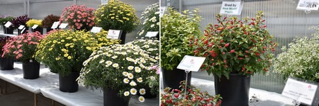 On the left: New line of Argyranthemum Daisini. The new line comes from Plantinova and consists of five varieties of which three (Coral, Yellow, White) were presented at the CAST. The Argyranthemum in the line have more small and many flowers, are more compact and uniform. On the right: