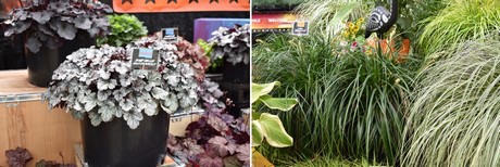 Baby Bells Pewter Perfect. It is a heuchera with smaller leaves and it works well in mixes and pots. On the right: