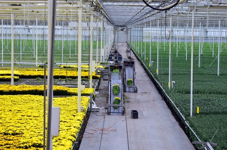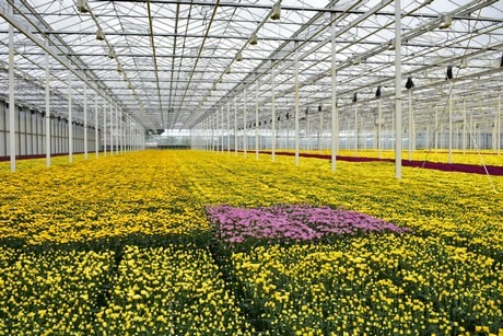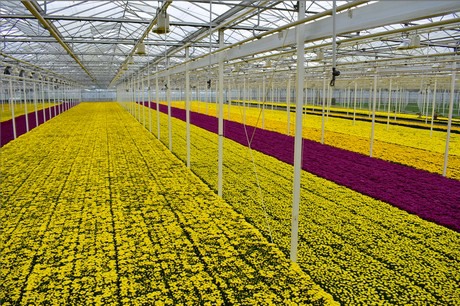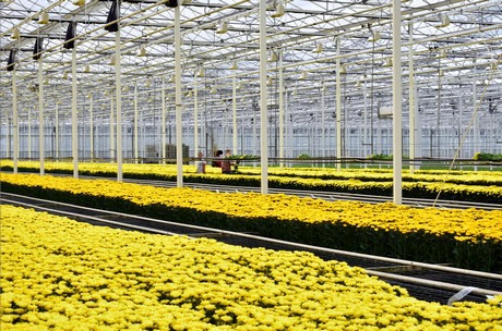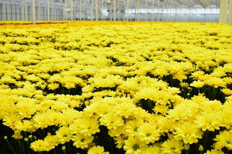 The chrysanthemums that are in flower. In this greenhouse, four varieties - of which three yellow varieties - are grown.