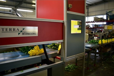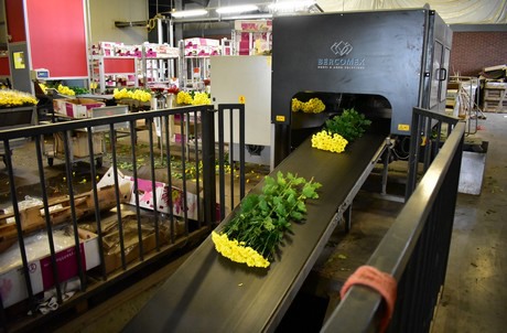 After the stems have been cut and the flowers have been bunched, they are checked by a camera and sleeved.