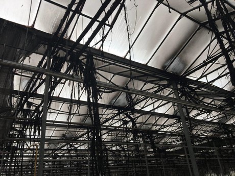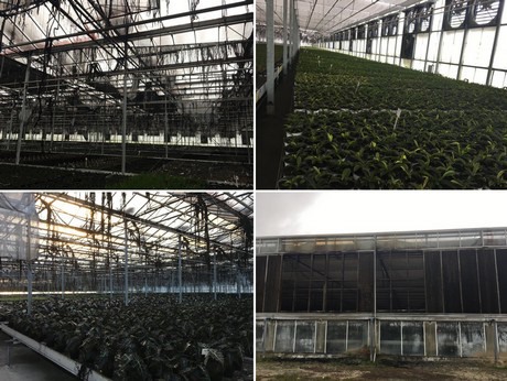 "The morning of Thanksgiving, I received a call with the message that there was smoke coming out of the warehouse", Pieter Mertens, Production Manager at the nursery. "When I arrived, there were no flames anymore, but when the smoke withdrew, the damage became visible; screen installations were hanging, glass was broken at several spots, the floor of the benches was bent, none of the automation was working anymore, and so on." Of the 3.6 ha greenhouse, 2.3 ha was damaged.