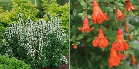Both plants are new introductions by Spring Meadow Nursery and are results of the work of in-house breeders Tim Wood (Illuminati Tiny Tower Philadelphus) and Megan Mathey (Peppy Le Pom Punica granatum).