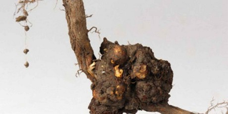 Agrobacterium initially starts as small swellings on wounded plant's parts. Young tumors are soft, creamy white and rounded. The shape becomes irregular with age and may turn brown or black. Several tumors may occur on the same plant and rot from the surface of the plant completely or partially, possibly developing repeatedly in the same area season after season. Other symptoms may include, stunted growth, Chlorotic leaves and plants may be more susceptible to environmental conditions and secondary infections.