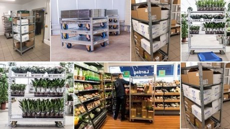Then, at the auction or wholesaler, Andersen sees that too much handling is being done. The plants and flowers that are sold through the auctions, for example, are being repacked on own trolley systems of the retailers. These trolley systems are not suited for flowers and plants, as they do not have the same measurements of the packages in which the flowers/plants are supplied in - they are offered in CC measurement. The Uni-Troll will eliminate these repacking processes and in turn will also eliminate the use of one-time plant trays." On top of that, as labor costs are rising, more and more is being automated. Big automated warehouse installations, for example, explode over the last years. Then, trolley systems need to be designed for its purpose too, and the Uni-Troll is."