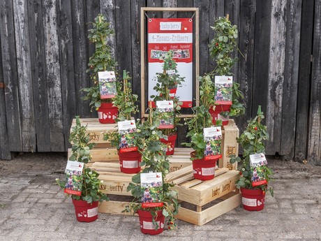 A long harvest, healthy characteristics and an effective marketing concept: Developed on the basis of a cooperation between the German tree nurseries Heinje und Christoph Marken, Son & Koot from the Netherlands and Verdia from France, the Lucky Berry blueberry (Vaccinium) and strawberry (Fragaria ananassa) is being presented as a robust new addition to the fruit plant segment. In 2019, their new addition was awarded the Taspo Award in the categories of "best marketing concept" and "best product presentation at the point of sale".