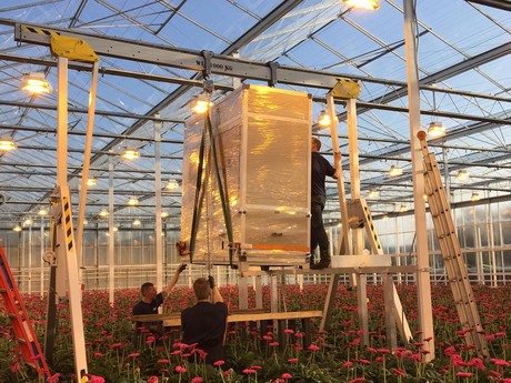 Eef: "When installing a unit on the concrete path or on an ebb and flow floor, it simply comes down to using the forklift and it is done. In order to also place the units in the crop, we have called on Van der Goes Europa bv to apply their expertise in placing cogeneration units, to position the DryGair units."