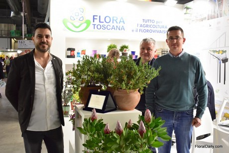 Lorenzo Fedi, Luca Quilici and Christian Petrasi of Flora Toscana next to the award-winning new variety; Grevillea Ignite. The Grevillea Ignite of Flora Toscana won the first price in “2019 Myplant and Garden novelties and innovations of the horticultural sector” prize in the category best ornamental plants. The variety was honored by the jury for its colors, the innovation of its shape and for the importance for landscape gardening, in particular for xeroscaping. Grevillea Ignite (G.alpina x rosmarinifolia), is a tough and hardy plant native to New Zealand, suitable both for growing in containers and as a border plant, for which Flora Toscana holds exclusivity rights for Europe.