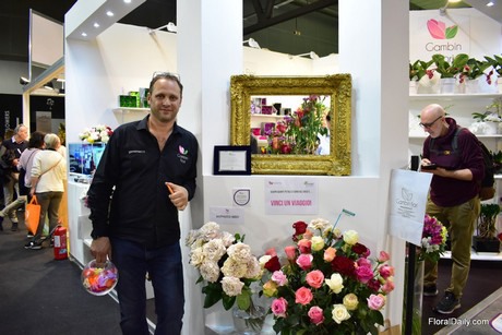 Alessandro Gambin of Gambin Fiori presenting the award-winning cut rose Rosa Westminister. It was awarded for the innovative and environmentally friendly packaging, and the potential resistance to diseases.