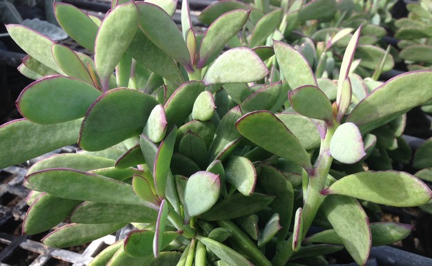 Senecio Crassissimus- a great additional texture and color plant. Upright, rounded evergreen succulent, with an attractive silver- green, purple margins, flat, fleshy foliage. Easy to grow, low maintenance, drought tolerance. Can be used for small landscape, garden planting, rock gardens, patio plant, excellent in patio containers and combinations with other succulents. (Visit Jaldety to see more novelties at Suncrest Nurseries, 400 Casserly Rd, Watsonville CA 95076, USA. Click here to email the company for more information)