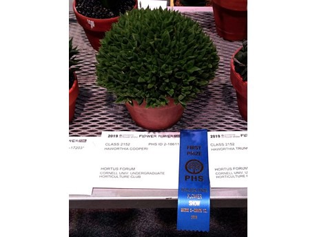 Plant Sciences Majors Samuel Sterinbach and Alexander Liu and International Agriculture & Rural Development Major Veronika Vogel brought home a blue ribbon for their Haworthia cooperi and earned 37 other ribbons.