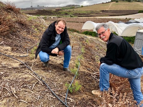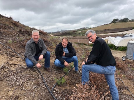 Steve Dionne, Wafex USA, Craig Musson, Wafex, and Michael A Mellano inspect new Helix wax planting in Carlsbad, California