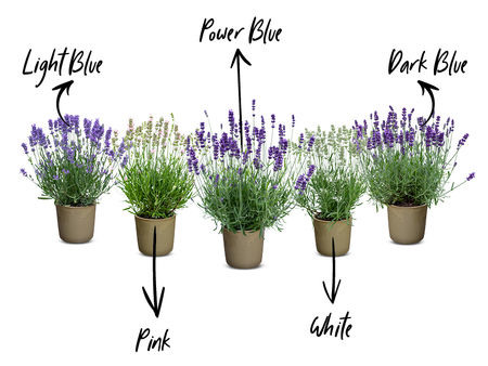 Four out of the five varieties in the Lavandula angustifolia BeeZee ™ series
