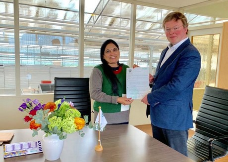 Mrs. Bhagyashree Patil, Chairperson & Managing Director of Rise nā Shine group India, and Jacob Schneider, Managing Director of Schneider BV, signing the agreement earlier this month.