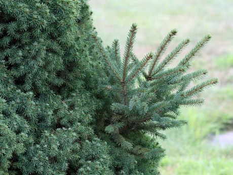 Photo 2. Dwarf spruce with a branch reverting to the original non-dwarf state. Photo by Ragesoss CC BY-SA 3.0.