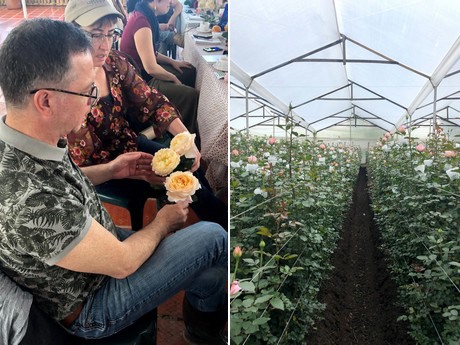The guests spent the next couple of hours touring other greenhouses, including the block where the David Austin English Garden Rose varieties are grown, and the production area, where the garden roses are packed for shipment throughout the world. “We started with just seven varieties,” explained Azout. “We were the first to see the David Austin varieties in the Southern Hemisphere.” More than 60 different varieties are now grown at Alexandra Farms, and the EMC team was able to view them all.