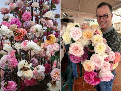 “When I designed the fountain, I wanted the designers, growers and even those in the production process who came to watch us build this design to experience the garden roses and to really discover their potential,” said De Bruyne. “Thanks to Joey for adding the butterflies, which gave the design a special dimension and created an unforgettable memory for all of us.”
