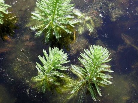 Parrot feather (Myriophyllum aquaticum) is prohibited from sale in Michigan. It is also on the watch list as it poses an immediate threat to ecosystems if released. Photo by Leslie J. Mehrhoff, University of Connecticut, Bugwood.org.