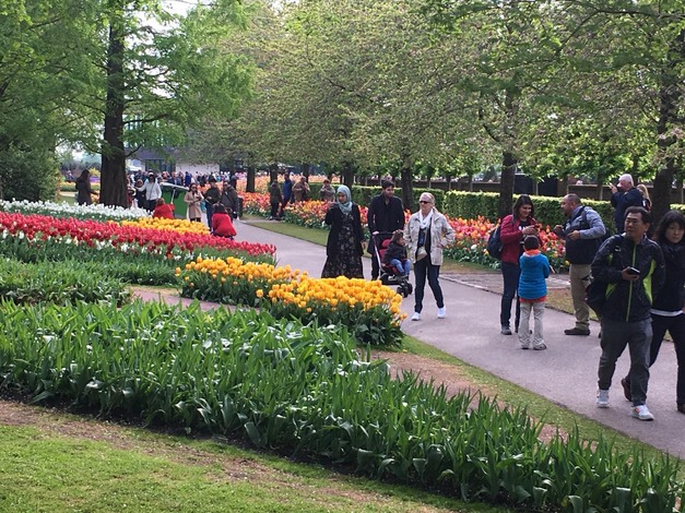Last weekend, we've paid a visit to the Keukenhof in Lisse, the Netherlands. Yearly, this 32 ha area is filled with over 7 million bulbs and visited by more than a million visitors from all over the world. Also this year, it has been busy and particularly during the warm and sunny Easter weekend. People were stuck in traffic for hours and in only four days of the Easter weekend, over 200,000 people visited the park. Last year, the number during these days was only 80,000 people and this probably had to do with the lower temperatures at that time.