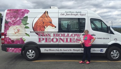 Wanda is a member of the co-op’s marketing committee and makes it a point to spread the word about Alaska peonies wherever she goes.