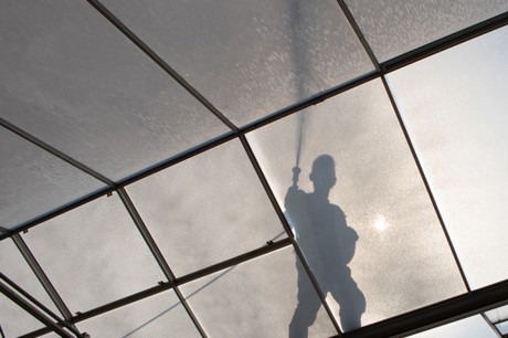 They are therefore increasingly more often opting for temporary extra protection during the summer peak as a supplement to other coatings. ReduSystems' spray chalk is a liquid solution without a binding agent. It can be uniformly applied by machine or with a spray gun. Because it does not contain a binding agent, it will disappear from the greenhouse roof after a few rain showers. Often that is exactly long enough.