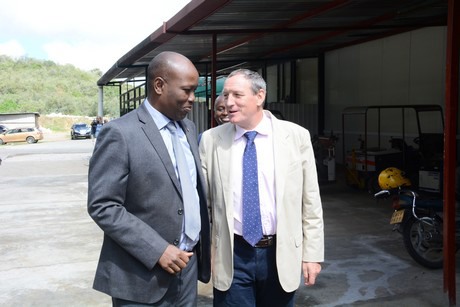 Neil Heilings and Lee Kinyanjui with solar plant partners
