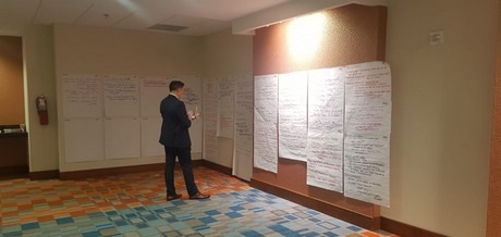 "The 'Thought on topics' were place at the four corners of the room . Our group got "How to approach the reluctant buyer?" The answers were written down on the wall."