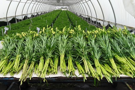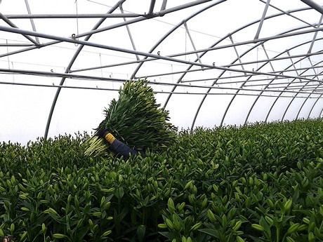 We grow of Royals planted directly in the ground, covered with plastic hoop houses. Years ago we grew them under glass, but we’ve found that these lilies respond very well to the full UV spectrum of light. Glass greenhouses block UV-B, which is why you can’t get a sunburn through glass.