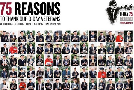 The D-Day 75 Garden takes pride of place in the foreground at Royal Chelsea Hospital at RHS Chelsea Flower Show 2019, taking place from 21-25 May 2019. The garden itself celebrates the lives of all of our Normandy veterans, 75 of whom will be invited to take part across the week and share their incredible stories with the Chelsea pensioners and the public.