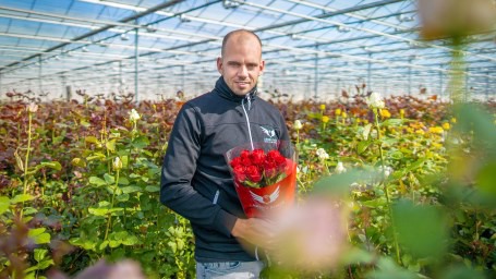 Arend Roses produces roses on almost 11 hectares, divided over two locations in Maasland. "We grow eight varieties. Seven of them are exclusively available from us." Every year, the company produces around 45 million roses. Arend Roses has various sustainability certificates.