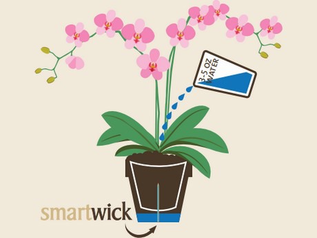 The SmartWick easy watering system is designed to keep each plant perfectly hydrated from farm to store and on to customer homes. After purchase, owners simply fill the water reservoir every week with 3oz. – 5oz. of water, making sure that the SmartWick (but not the plant itself) is partly submerged, then sit back and enjoy fresh blooms. SmartWick does all the work to provide easy, effective watering, helping maintain the longevity and optimum health of each orchid plant.