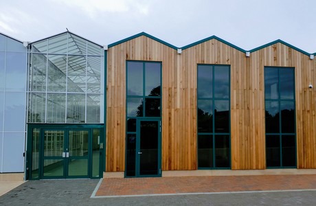 There is standard glazing for the growing area and white glass for work areas and the corridor to help keep the temperature down in the summer. But the main eye-catcher is the insulated cladding with cedar facia for the offices, storage area and the plant room. “It looks really nice, we have not done that before”, says David. “The offices are quite large: 186 m2 in total. It is a 2-layer office with a canteen and welfare area on the ground floor and offices above on the mezzanine.”