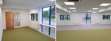 There is standard glazing for the growing area and white glass for work areas and the corridor to help keep the temperature down in the summer. But the main eye-catcher is the insulated cladding with cedar facia for the offices, storage area and the plant room. “It looks really nice, we have not done that before”, says David. “The offices are quite large: 186 m2 in total. It is a 2-layer office with a canteen and welfare area on the ground floor and offices above on the mezzanine.”
