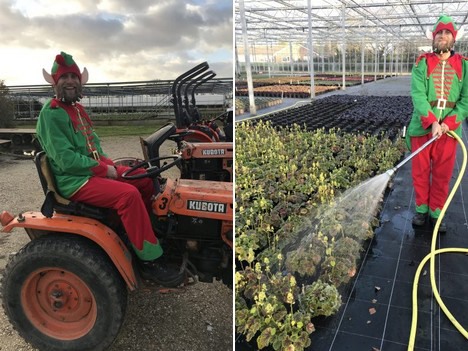 Simon the Elf started his day at a not-so-festive Packaging Meeting with a number of sensibly dressed Farplants colleagues. For some reason they couldn’t take him seriously, it may have been the bells jingling round his neck every time he moved. Simon the Elf then went about his usual day of meetings, roaming the sites checking on staff and jobs, and making a general nuisance of himself by trying to get involved in nursery jobs. He made time in his busy schedule to pose for selfies with staff in exchange for more donations and ended the day with a meeting about the Christmas Party. He even extended his act into the evening, when the Walberton Managers met for a pre-Christmas drink, turning quite a few heads among the pub regulars.