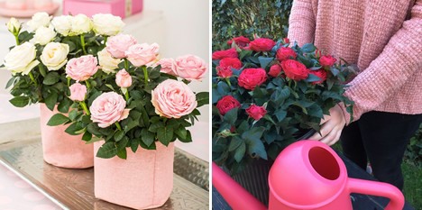 On the left: Infinity roses as a Mother's Day gift. On the right: Infinity roses also work well as outdoor decoration.