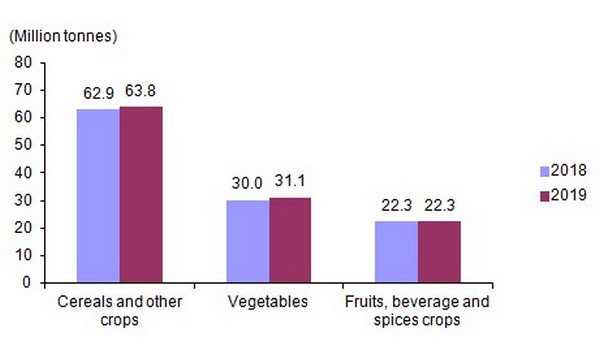 Fruits, beverages and spices crops production became 22.3 million tonnes in 2019 increasing by 0.3% when compared with the previous year.