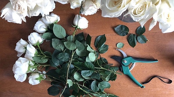 When working with garden roses to create a wedding bouquet or any other design, one of the first questions to ask is, “How much do I really want to take away?”