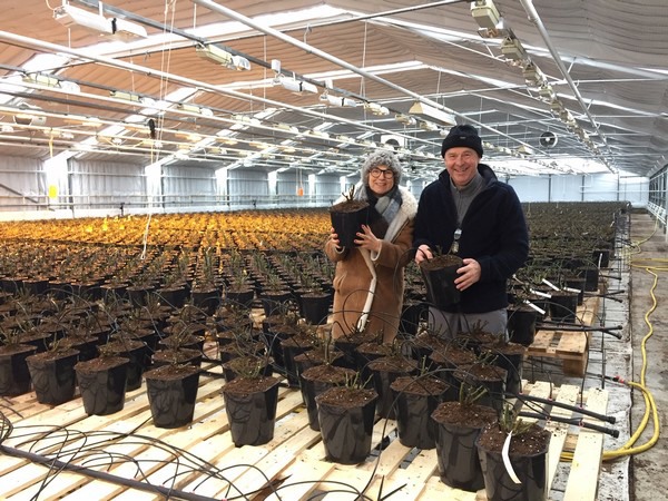 Breeder Rosa Eskelund with one of the Norwegian growers who pot for the Garden Center chain Hageland