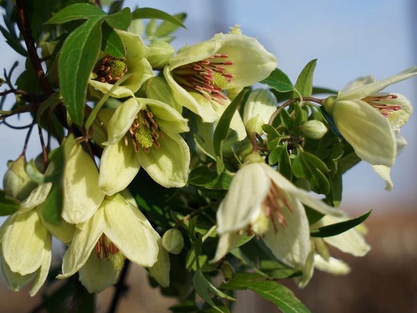 It is an evergreen Clematis very close to the Clematis napaulensis. Flowering season from November to February. Its white bellshaped flowers will bring colours and decoration to the garden in winter or Christmas table. Height up to 2.5M.