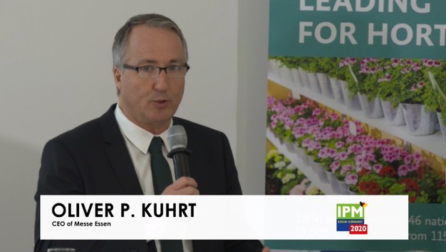 At IPM Essen, trade visitors from all over the world will find a complete overview of the market: from plants and technology right up to floristery and garden features. Together with their partner associations and exhibitors, they provided the latest market figures, trends and product innovations as well as information about the fair program. Oliver P. Kuhrt, CEO of Messe Essen kicks off the press conference with showing the facts and figures of the 2020 edition.