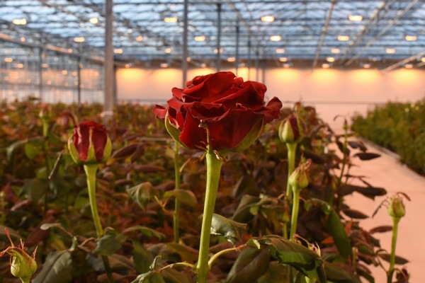 years of breeding and trialing, Kordes Roses put the new variety named Con Amore on the market in 2018. Dutch rose grower Van der Hulst started to grow this variety since the very beginning and recently decided to expand the acreage of this rose variety. "When growing it, he quickly noticed that the variety performs well under a lower light intensity than most other red rose varieties on the market." Also other growers seem to notice it. "The growers that are now growing Con Amore grow it under 7,000 to 10,000 lux, instead of 15,000 lux which most red varieties require."