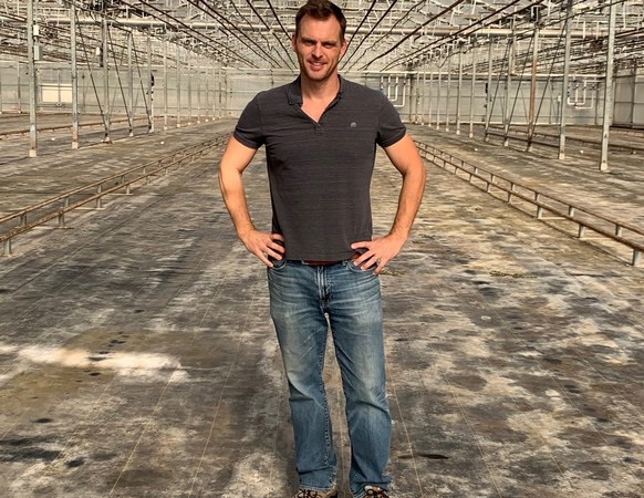 Toine Overgaag in the greenhouse.