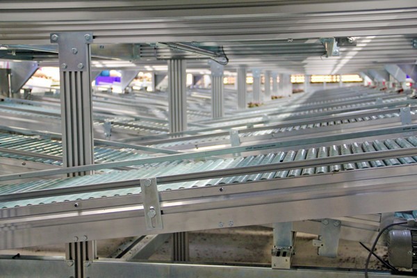 An additional challenge was that the plants also have to be sorted by age, which in turn results in a number of extra grading classes. By means of buffer space on the roller conveyors and the conveyor belts of the cutting-insert system and the control system, the correct trays are ultimately found together in the right order and collected in the buffer. As soon as there are sufficient trays in a buffer belt for one full container, the trays are placed back on the container.