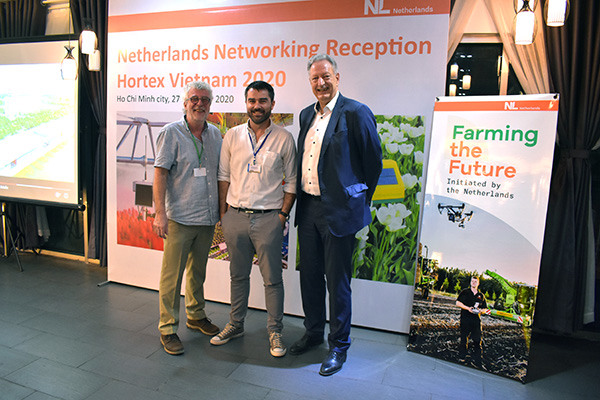Henk van Eijk (Kenlog) & Pieter van Berchum (Gakon) with the Netherlands Vietnam Horti Business Platform and new member Jean-Marie Rozec with Rijk Zwaan.