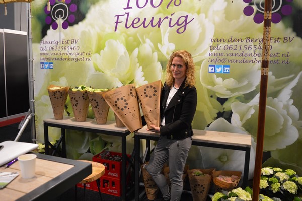 Van den Berg introduces a 100% paper sleeve, explains Marjanne van den Berg. Besides, this Dutch grower has other news to share: the hydrangea variety 'Caipirinha' (on the right in the picture) has, in its category during flowering trials conducted by FloraHolland, the longest shelf life.